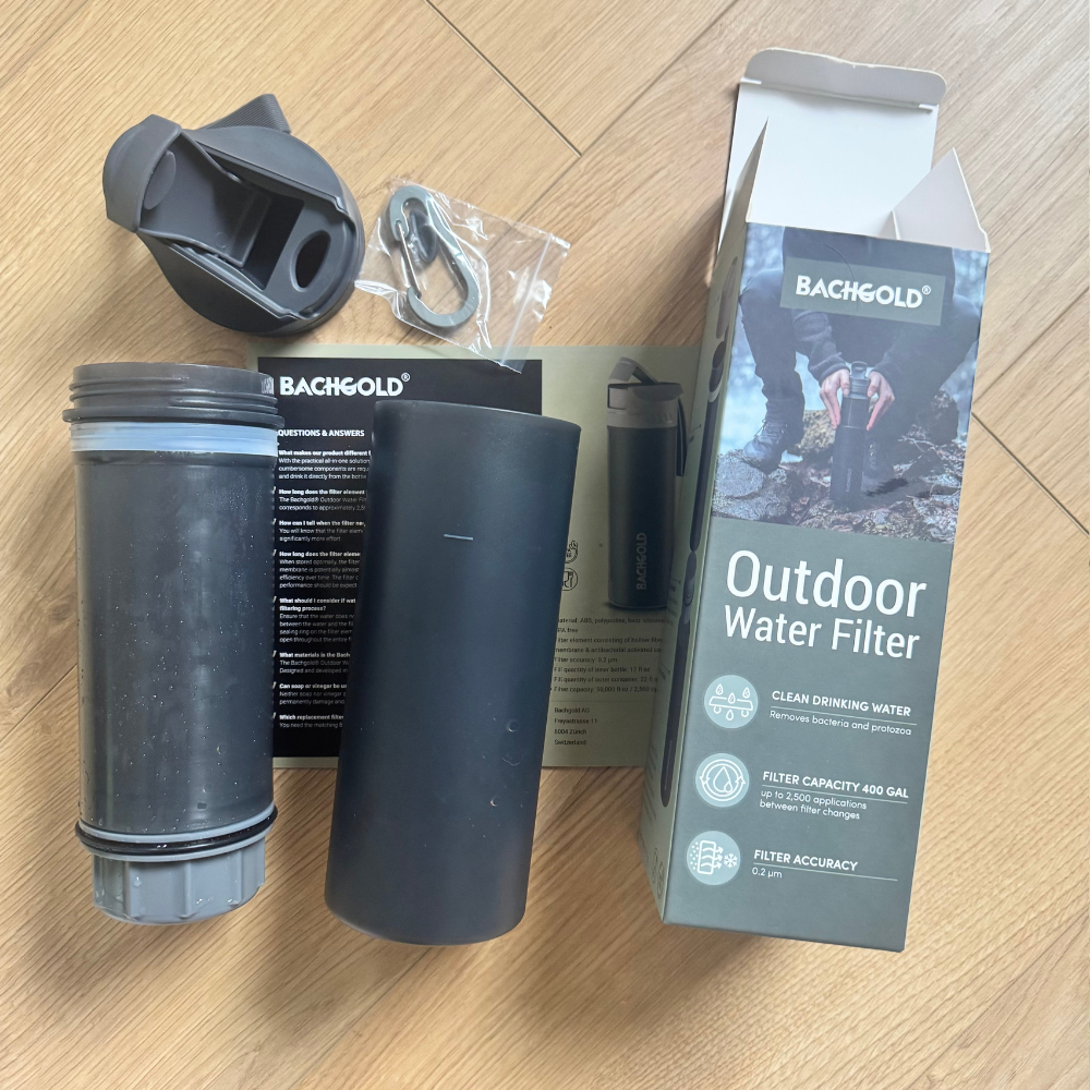Die Trinkflasche von Bachgold überzeugt in vielen Bereichen, insbesondere in der Funktionalität und Qualität. Der integrierte Filter sorgt für klares, geruchloses Wasser, auch bei Nutzung von trübem Bachwasser, und bietet einen konstanten Durchfluss. Die Flasche eignet sich ideal für Outdoor-Aktivitäten und den Alltag, da sie leicht zu handhaben und robust ist. Bei der Dichtheit zeigt das Produkt keinerlei Schwächen, selbst bei mechanischen Einwirkungen wie Stürzen bleibt es stabil und dicht.