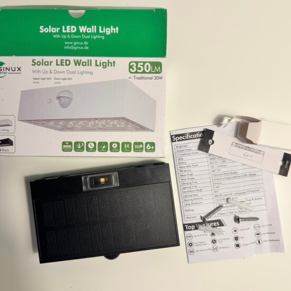In Bezug auf Verpackung und Kennzeichnung bietet die GINUX SOLAR-Lampe eine stabile, ressourcenschonende Verpackung, die das Produkt gut schützt, jedoch fehlen vollständige EU-konforme Herstellerinformationen. Dies könnte für Verbraucher, die detaillierte Herkunftsinformationen erwarten, ein Manko darstellen. Dennoch sind die wichtigsten Produktdaten und Nutzungshinweise klar und verständlich auf der Verpackung vermerkt.